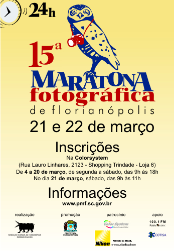 15ª Maratona Fotográfica de Florianópolis nos dias 21 e 22 deste mês.