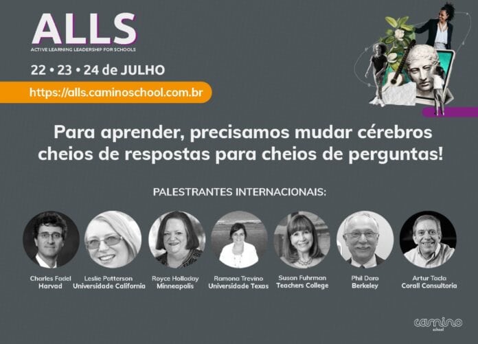 Iniciativa realizada pela Camino School, a primeira edição do ALLS – Active Learning Leaderships for Schools acontece de forma 100% on-line, entre os dias 22 e 24 de julho. Seu grande objetivo é assessorar mantenedores, diretores e demais profissionais da liderança de escolas da educação básica na implementação de metodologias inovadoras tanto pedagógicas como operacionais. A programação conta com palestrantes nacionais e internacionais, tradução simultânea, programa de mentoria e acompanhamento das escolas participantes, e, ainda, diretores da rede pública de ensino podem concorrer a bolsas de gratuidade para a participação integral no programa.