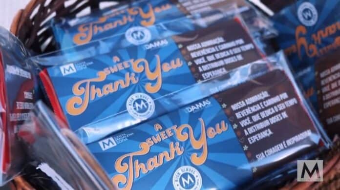Isabela Galvão de Andrade Lima Hastenreiter, coordenadora do GIA-High School no Santa Madalena Sofia, que idealizou o projeto de doação de chocolates, em conjunto com seus alunos, explica que a ideia surgiu quando ela foi se vacinar e notou a intensa rotina de trabalho dos enfermeiros. “Entre uma vacina e outra, uma das profissionais comentou que estava há algum tempo sem se alimentar e gostaria de um chocolate para ganhar energia”, relembra a coordenadora. Foi então, que ela compartilhou a ideia com seus alunos, os quais resolveram aprimorá-la e colocá-la em ação.