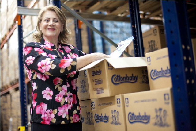 Na foto: Cleusa Antunes Silveira, diretora social da Cottonbaby, confere os produtos de mais uma doação neste Natal.