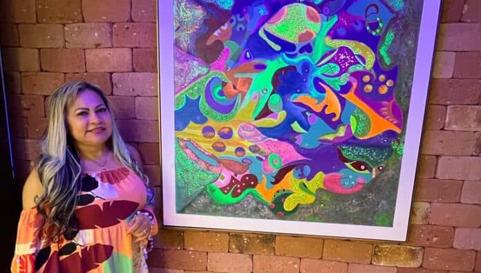 As pinturas da artista renomada estão expostas para o público do shopping e a entrada é gratuita