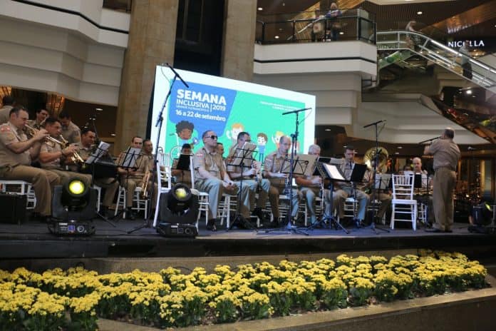 Florianópolis – A segunda-feira (16) foi de festa no Beiramar Shopping, em Florianópolis, na abertura da Semana Inclusiva 2019. O público presente parou para prestigiar a Banda da Polícia Militar de Santa Catarina composta por 40 musicos, sob a regência do maestro, o Subtenente Marcos César Vianna, e a apresentação do grupo Bengalantes formado por bailarinas de baixa visão ou cegas da Associação Catarinense para Integração do Cego (ACIC), sob a coordenação da coreógrafa Mara Cordeiro.