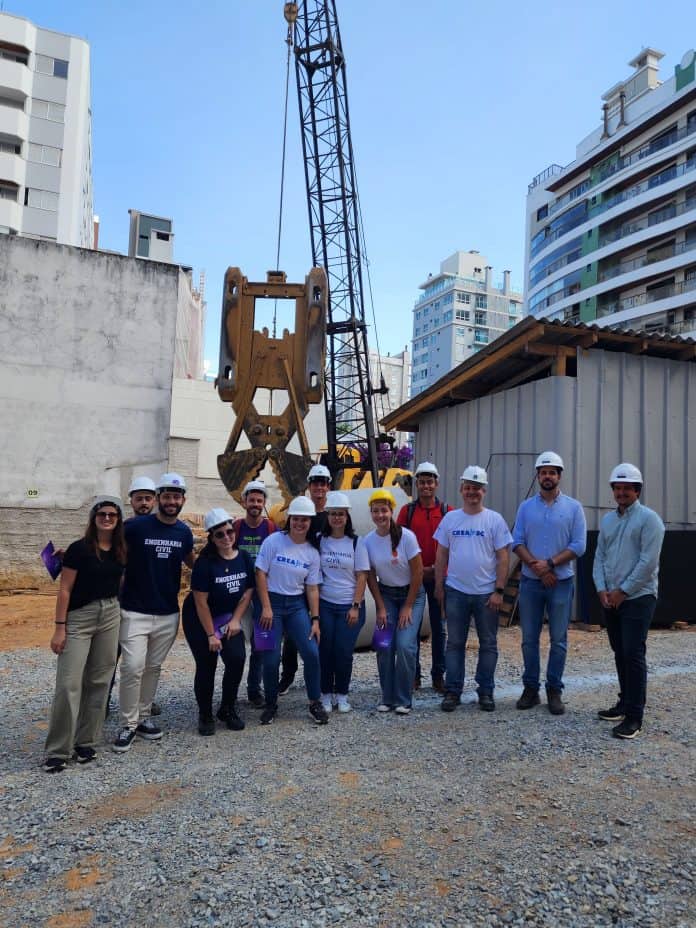Estudantes do curso de Engenharia Civil da Universidade Federal de Santa Catarina (UFSC) participaram de uma visita técnica enriquecedora à obra da construtora WKoerich, localizada no coração de Florianópolis, na última terça-feira (25). A iniciativa, que visa aproximar os futuros profissionais do dia a dia da construção civil, foi coordenada pelo Assessor de Integração Profissional do Crea-SC, Tecnól. em Gestão Ambiental Rodrigo Rudolf Espíndola, responsável pelo CREA-Jr.