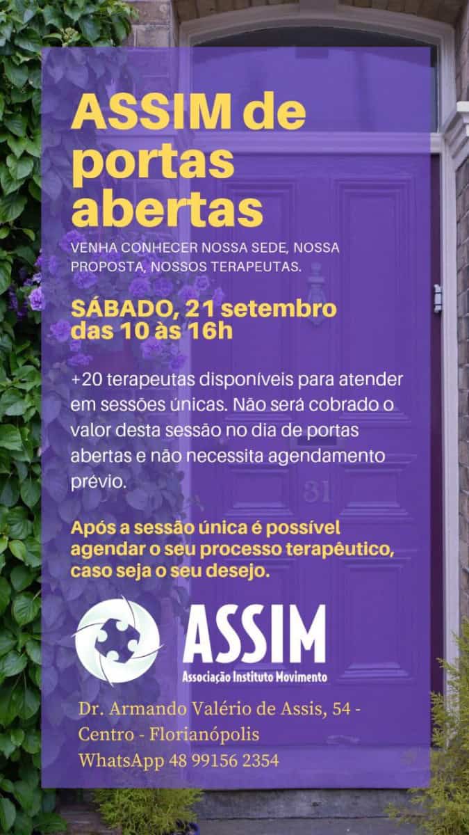 A Associação Instituto Movimento (Assim) estará no dia 21 de setembro de portas abertas para atendimento terapêutico