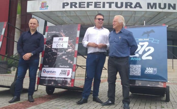 Os catadores de recicláveis de São José receberam nesta segunda-feira (14) novos carrinhos para a coleta dos materiais. A ação social faz parte das comemorações da Prefeitura de São José pelos 272 anos do município, no próximo sábado (19), e tem o apoio da Quantum Engenharia, empresa responsável pela iluminação pública da cidade, que reforça o compromisso com a sustentabilidade.