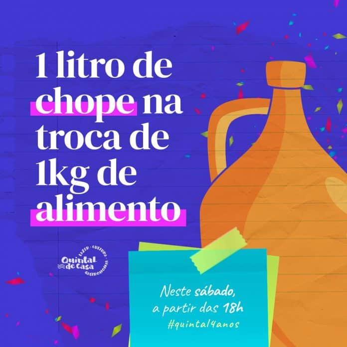 O Quintal de Casa fica na Avenida Campeche, 2.860 – Novo Campeche. Neste sábado (18), funcionará apenas durante a ação de troca de alimentos por chope, a partir das 18 horas.