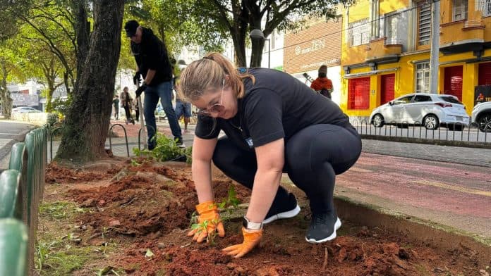 Ação voluntária planta mais de 450 mudas de flores na Av. Hercílio Luz e mobiliza comunidade em Florianópolis