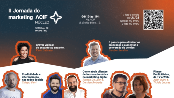 Uma jornada que irá reunir os conceitos mais atuais de marketing digital, estratégia de marca, vendas online, ferramentas e soluções digitais. Assim será a II Jornada do Marketing realizada pela Associação Empresarial de Florianópolis (ACIF), na próxima quinta-feira, 6, das 19h às 21h30, na sede matriz da entidade.