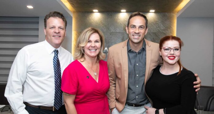 Foto 1 – Dan Cockerell, ex-vice-presidente da Disney; Solange Borguesan, vice-presidente da ACIF; Célio Bernardi, presidente da ACIF; e Martina Dimoska, astronauta análoga da NASA.