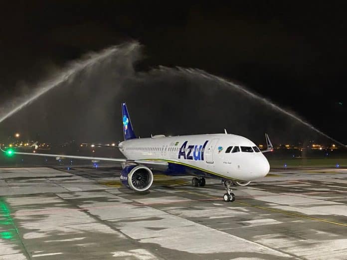 Com direito a Water Salute e placa comemorativa, o Aeroporto Internacional de Florianópolis inaugurou na noite de segunda-feira (30/11) uma nova rota regular para o Aeroporto Santos Dumont, no Rio de Janeiro, com a Azul Linhas Aéreas.