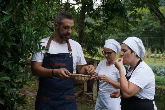 Desde janeiro, o chef e sua equipe realizam visitas nos sítios e pontos de venda dos parceiros para curadoria dos produtos que farão parte do cardápio – só revelado aos participantes à mesa.