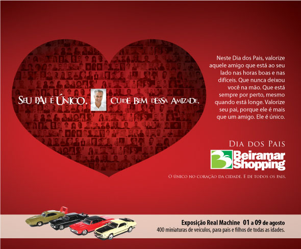 Para este Dia dos Pais (domingo, 9 de agosto) o Beiramar Shopping lançou uma campanha com o tema: “Seu pai é único. Cuide bem dessa amizade”- ressaltando a importância da relação entre pais e filhos.