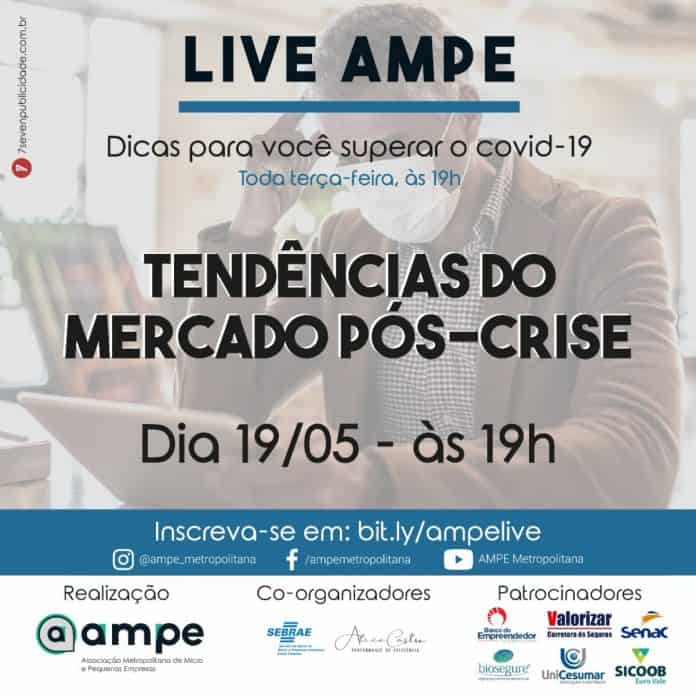 A Ampe Metropolitana inicia nesta terça-feira (19) uma série de sete lives com a professora e consultora de empresas Alice Castro, que apresenta dicas para os empreendedores enfrentarem este momento de crise com a pandemia do coronavírus. As palestras gratuitas serão sempre às 19h, pelas redes sociais da Ampe ou diretamente no link http://bit.ly/ampelive. O primeiro tema será “Tendências do mercado pós-crise”.