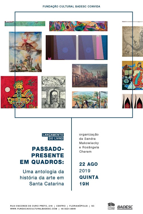 A Fundação Cultural Badesc, em Florianópolis, promove na quinta-feira, dia 22 de agosto, a partir das 19h, o lançamento do livro Passado-presente em quadros: uma antologia da História da Arte em Santa Catarina. Organizado pelas professoras doutoras Sandra Makowiecky e Rosângela Cherem a publicação com apenas 300 exemplares estará à venda no dia do lançamento no valor de R$ 50. O valor arrecadado será destinado para projetos culturais e assim como alguns exemplares vão ser doados para bibliotecas, cursos de arte, escolas públicas e instituições culturais. A entrada para acompanhar o evento é gratuita.