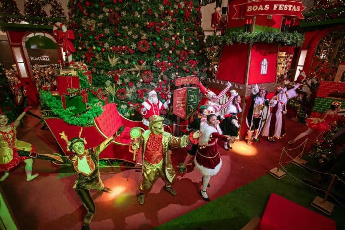 Após o show de seus ajudantes, o Papai Noel seguiu para uma poltrona, instalada ao lado da grande árvore de 15 metros de altura, para aguardar os pedidos de quem vive intensamente este período mágico do ano.