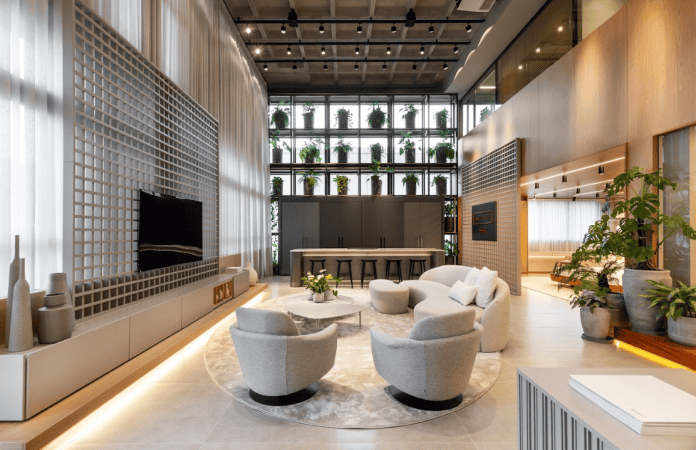 No térreo, o visitante é recebido por um amplo living integrado a um espaço gourmet minimalista, além de um dormitório com closet e salas de atendimento cheias de personalidade. No mezanino, seis salas exclusivas apresentam produtos diferenciados, cada uma com uma identidade própria. “Cada ambiente foi pensado para inspirar e mostrar como o mobiliário planejado pode transformar espaços em lugares únicos e cheios de vida”, destaca Claudete.
