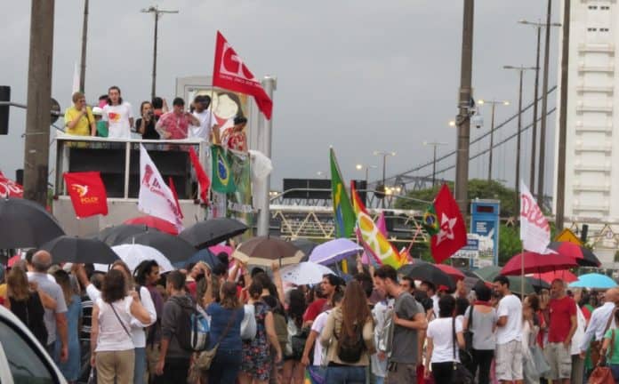 Ato contra o impeachment de Dilma reúne manifestantes no Centro de Florianópolis