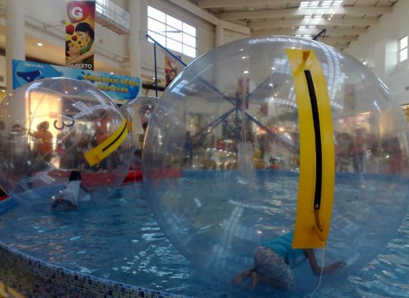 Pela primeira vez em um shopping de Florianópolis, o Aquabol é uma grande piscina indoor, com 35 mil litros de água, onde é possível fazer acrobacias e piruetas sobre a água sem se molhar, tudo dentro de bolas de plástico gigantes, com 14 metros cúbicos de ar. O brinquedo é livre para qualquer pessoa com menos de 60kg.