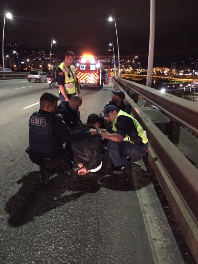 Bombeiros e guardas municipais perceberam que o rapaz estava decidido a pular da ponte e decidiram agir. Os agentes da GMF permaneceram tentando conversar com o rapaz, distraindo sua atenção, enquanto um dos bombeiros atravessou a proteção metálica para se aproximar sem que o homem percebesse.