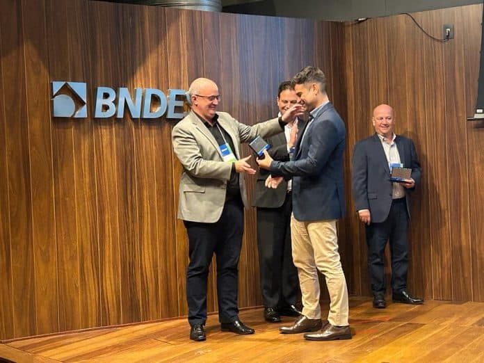 O Banco Regional de Desenvolvimento do Extremo Sul (BRDE) recebeu dois prêmios Reconhecimento BNDES (Banco Nacional do Desenvolvimento), durante o Fórum dos Agentes Financeiros – 2ª Edição de 2023, nesta terça-feira (14), no Rio de Janeiro. Com mais de 40 modalidades de operações em linhas do BNDES, o BRDE foi premiado em primeiro lugar na categoria “Abrangência em linhas BNDES”, por ter um portfólio variado no repasse de recursos para investimentos que envolvem o agro, estados e municípios, infraestrutura, empresas de portes diversos e demais segmentos na Região Sul, área onde o banco atua. Só esse ano, o BRDE operou 26% do valor total de R$ 1,4 bilhão contratados, com recursos do BNDES nos três estados do Sul. O BRDE ainda teve a premiação em segundo lugar, na categoria atendimento ao cliente e foi o primeiro banco de desenvolvimento credenciado pelo Banco Nacional.