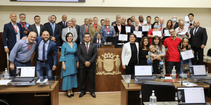 Em grande expediente realizado nesta quarta-feira (23), a Câmara Municipal homenageou 25 personalidades da Capital, com a entrega da Medalha Manezinho da Ilha Aldírio Simões.