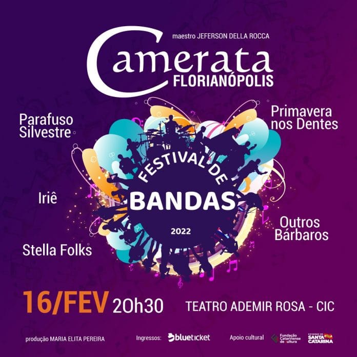 O próximo espetáculo da Camerata Florianópolis será muito especial, pois envolverá algumas das principais bandas autorais da Grande Florianópolis, em única apresentação, no dia 16 de fevereiro, às 20h30, no Teatro do CIC. Estarão juntos com a Camerata as bandas Iriê, Primavera nos Dentes, Parafuso Silvestre, Outros Bárbaros e Stella Folks. Os ingressos estão à venda no site da Blueticket.