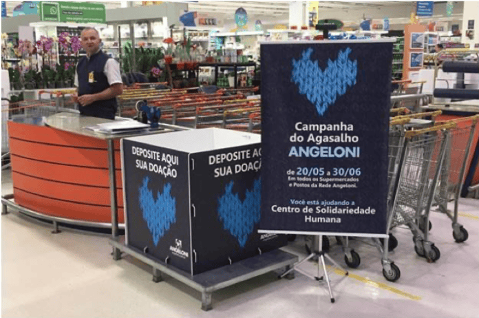 O Angeloni inicia hoje (25) mais uma grande ação de solidariedade para a comunidade catarinense em parceria com clientes e sociedade: a Campanha do Agasalho da Rede mobilizará todos para proporcionar um inverno mais aquecido às famílias carentes. Assim, até 31 de julho, em todas as lojas e postos do grupo haverá caixas coletoras para receber as doações de roupas, calçados, cobertores, enfim, qualquer tipo de agasalho que possa ajudar aqueles que sofrem com o frio.