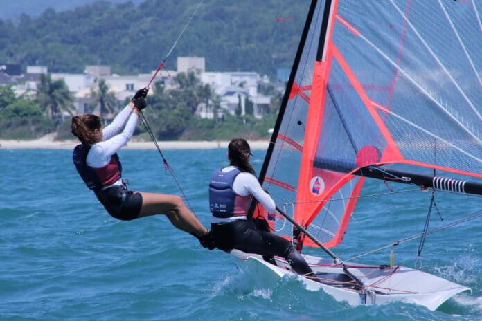 Apenas um ponto separa os líderes Guilherme e Fernando Menezes de Clara Mateus e Livia Nogueira – Fotos: Edgar Ramos/Veleiros da Ilha