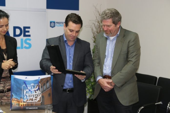 O prefeito Cesar Souza Jr. recebeu nesta quarta-feira, 2, a visita de David Trikle, vice-prefeito de Roanoke, na Virginia (EUA), para articular parcerias entre as cidades em questões de saúde, cultura, educação e ambiente. Com o vice-prefeito, estava Linda Diane Harrison, que articula atividades voluntárias entre as cidades irmãs de Roanoke, uma das quais é Florianópolis. As informações são da PMF.