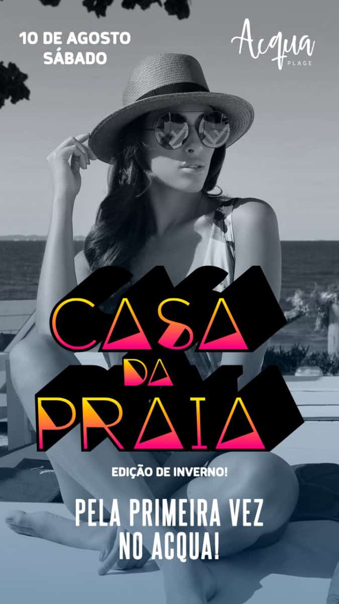 Neste final de semana, o Acqua Plage recebe a Casa da Praia no sábado (10). A estreia da festa open format, promete esquentar o sábado no Acqua. Os DJ’s Anão, André Maran e Coy e Acústico Nathan Malagoli comandam as pick ups da edição de inverno da Casa da Praia no beach club, em Jurerê Internacional. O Acqua Plage abre de sexta a domingo, a partir das 12h. A gastronomia mediterrânea é assinada pelos chefes peruanos Hugo Olaechea e Sara Sanchez.