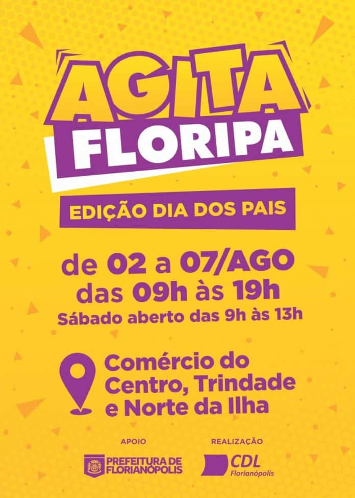 Depois do sucesso da primeira edição, a CDL de Florianópolis irá expandir o evento Agita Floripa para mais bairros da Cidade. Nesta 2ª edição, além do Centro de Florianópolis e o Mercado Público, o Norte da Ilha receberá estará com promoções para os consumidores aproveitarem a semana para compras.