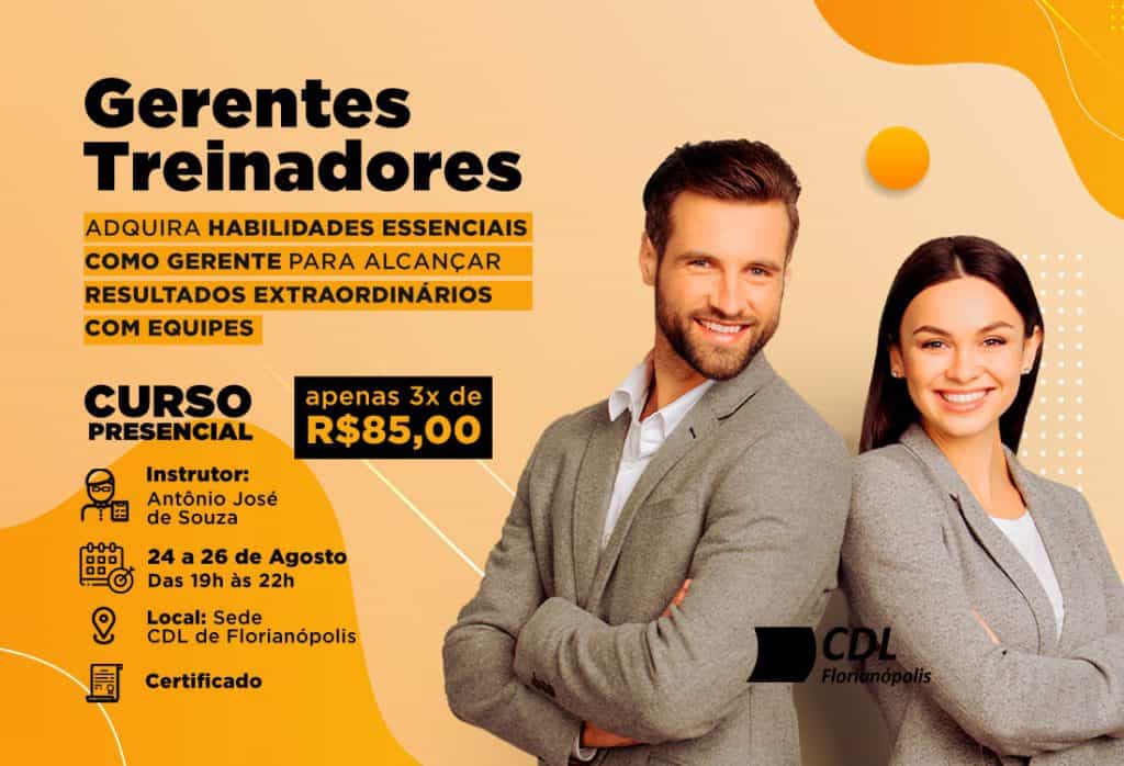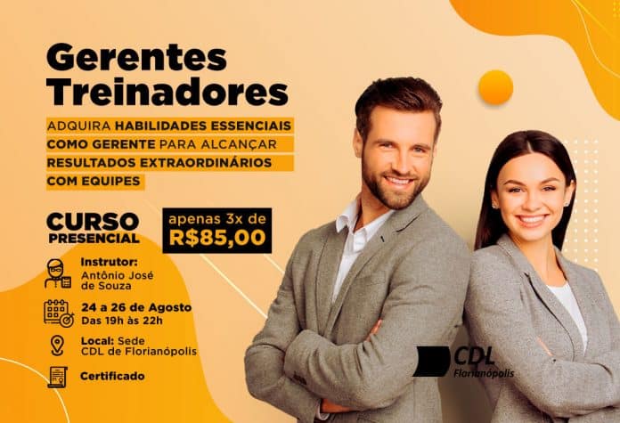 Adquirir habilidades essenciais como gerentes para alavancar resultados extraordinários com equipes é tema central do curso presencial “Gerentes treinadores” promovido pela CDL de Florianópolis. As aulas serão presenciais entre os dias 24 e 26 de agosto das 19h às 22h, na Entidade, localizada na rua Felipe Schmidt, 679, centro.