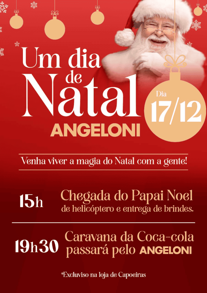 O Angeloni prepara uma tarde inesquecível para celebrar o espírito natalino na próxima quarta-feira, 17 de dezembro na loja de Capoeiras, em Florianópolis. A partir das 15h, o público poderá acompanhar a chegada do Papai Noel e da Mamãe Noel de helicóptero, em um momento simbólico que reforça a magia do Natal e transforma a loja em um ponto de encontro para famílias da região.