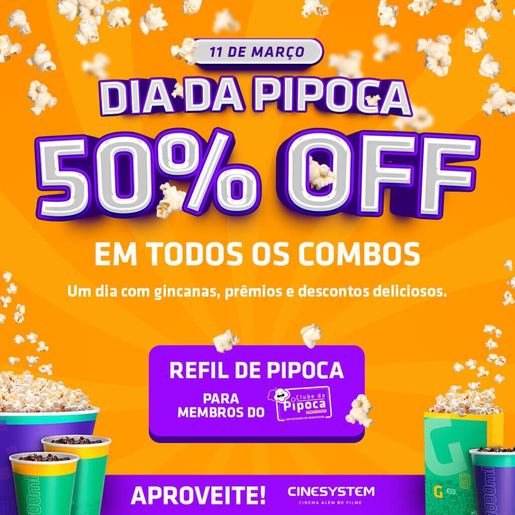 Seja doce, salgada ou meio a meio, se tem um item que não pode faltar na lista de quem curte um cineminha é a tradicional pipoca! E já que o próximo dia 11, sábado, é o Dia da Pipoca, a Cinesystem celebrará a data com uma ação de 50% de desconto em todos os combos da Rede.
