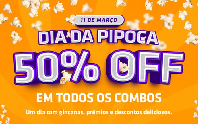 Seja doce, salgada ou meio a meio, se tem um item que não pode faltar na lista de quem curte um cineminha é a tradicional pipoca! E já que o próximo dia 11, sábado, é o Dia da Pipoca, a Cinesystem celebrará a data com uma ação de 50% de desconto em todos os combos da Rede.