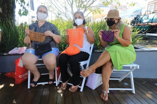 A secretária adjunta de Turismo de Florianópolis, Roseli Pereira, esteve no showroom da Círculo S/A para retirar a doação de mais de 56 quilos de fios, equivalente a cerca de 560 novelos, para o projeto que promete colorir o Mercado Público da capital catarinense. Crocheteiras e crocheteiros engajados nesta iniciativa confeccionarão aproximadamente 1,5 mil bandeiras, que serão penduradas no vão central do espaço. Além da Círculo S/A, a ação também conta com o apoio do Ceart/Udesc, Ecomoda, Associação do Mercado Público e Café do Largo.