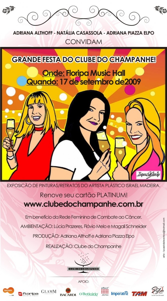 No dia 17 de setembro, o Clube do Champanhe junto com a promoter Adriana Piazza, estará realizando sua grande festa anual, no Floripa Music Hall.