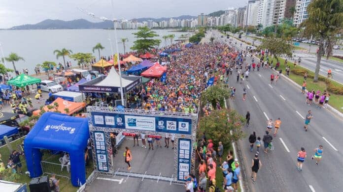 Festa sunset com a banda Chimarruts é atração após corrida de 5 km no sábado (19/11), e domingo terá provas de 3 km, 15 km e 21 km em Florianópolis – Fotos: Divulgação/Corre Brasil