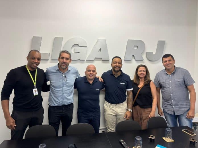 Recebida por Pedro H. Silva, a comitiva catarinense formada por Sidnei Machado (Superintendente de Obra Civil da Secretaria de Estado da Infraestrutura, e Marila Filartiga (Arquiteta e Gerente de Projetos de Arquitetura da Secretaria de Estado da Infraestrutura), reuniu-se com Hugo Junior, presidente da Liga RJ, para entender melhor as demandas que a Série Ouro apresenta, especialmente com a construção da Cidade do Samba 2 em andamento.