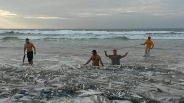 O vento predominante do quadrante Sul favorece a chegada de águas mais frias do Sul do continente. Neste final de semana, ocorre uma rápida variação do vento para o quadrante Nordeste. Esse vento encosta os cardumes de tainhas nas praias e diminui as ondulações geradas pelo vento do quadrante Sul, resultando em boas condições para a pesca da tainha.