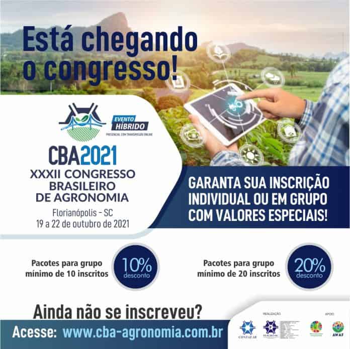 O Congresso é realizado pela Confederação dos Engenheiros Agrônomos do Brasil (Confaeab) e Federação dos Engenheiros Agrônomos de Santa Catarina (Feagro-SC) e pela primeira vez em 32 edições terá participantes de forma presencial e online. As inscrições ainda estão abertas e podem ser feitas até o dia 18 de outubro neste link. Há condições especiais para grupos acima de 10 pessoas e participantes do congresso online têm desconto de 50%. Após essa data, podem ser feitas presencialmente, no local do evento, com valor normal.