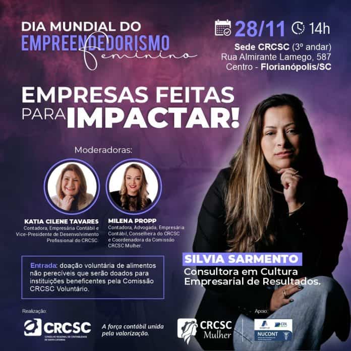 Novembro é o mês em que é celebrado o Dia Mundial do Empreendedorismo Feminino, e para comemorar a data, o Conselho Regional de Contabilidade de Santa Catarina (CRCSC) e a Comissão CRCSC Mulher promovem, no dia 28/11, a palestra “Empresas feitas para Impactar!”