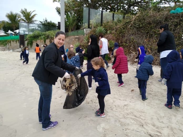 A segunda-feira foi divertida e de conscientização para um grupo de estudantes do Ensino Infantil do Colégio Energia Florianópolis. A turma composta por crianças com idade entre 2 e 5 anos, viveu uma aventura cheia de aprendizados na praia de Jurerê. Eles passaram a tarde recolhendo lixos como plástico, madeira, resíduos que não oferecessem perigo e encontraram, até mesmo, uma carcaça de tartaruga. “Foi uma tarde animada e produtiva, os alunos colocaram em prática tudo aquilo que conversamos em sala de aula. Eles são importantes multiplicadores de uma nova consciência ambiental”, explica Rosemeri Linhares, coordenadora pedagógica do Colégio Energia.