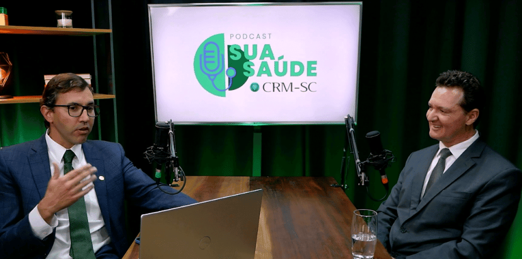 O podcast “Sua Saúde” foi criado pelo CRM-SC para disseminar informação de qualidade sobre saúde. Os episódios já gravados incluem conversas com especialistas sobre vacinas, saúde do sono, dores nas costas, uso de anabolizantes, entre outros.