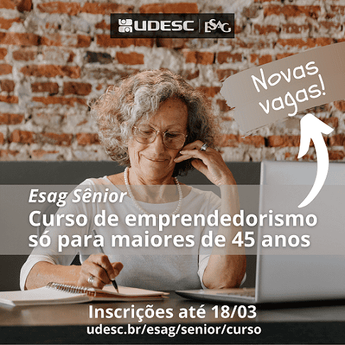 O Curso de Formação Complementar em Administração, programa de empreendedorismo oferecido pela Universidade do Estado de Santa Catarina (Udesc) exclusivamente para pessoas com mais de 45 anos, está com inscrições abertas até 18 de março para vagas complementares – não preenchidas no processo seletivo realizado em fevereiro.