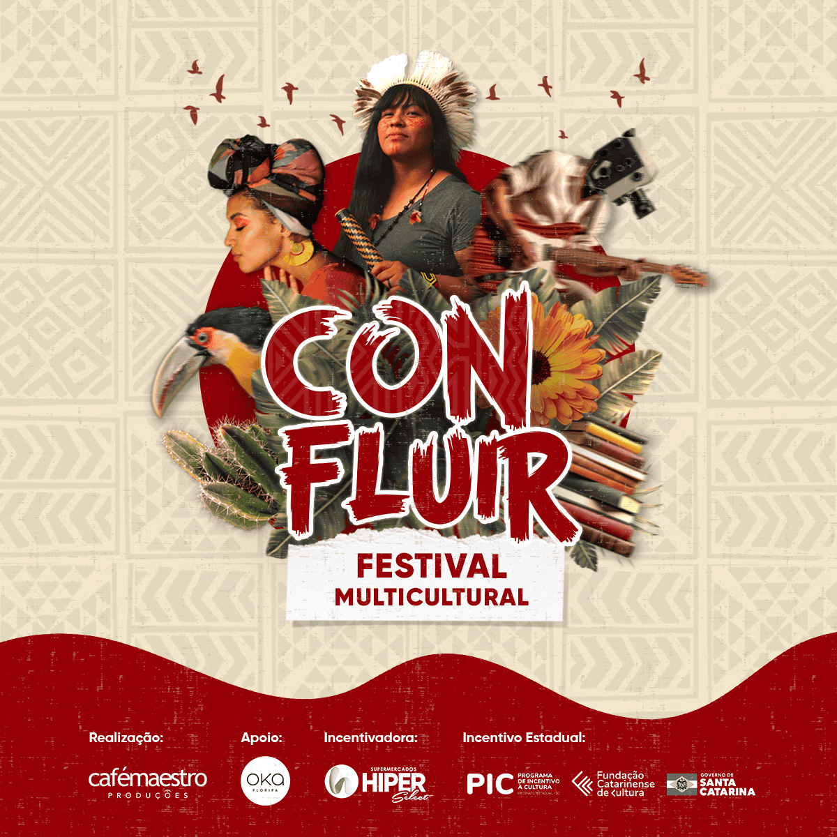 O CONFLUIR Festival Multicultural é um projeto cultural realizado pela Café Maestro Produções, por meio do Programa de Incentivo à Cultura (PIC), do Governo do Estado de Santa Catarina, aprovado pela Fundação Catarinense de Cultura, e conta com o apoio do Shopping OKA Floripa, e incentivo do Supermercado Hiper Select.