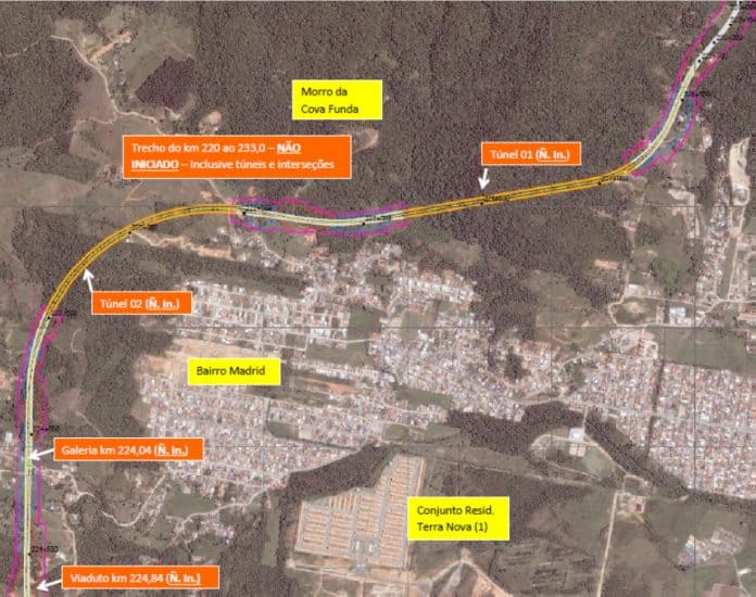 O trabalho da Federação destaca que o trecho que exige mais atenção é o que vai do km 220 (localidade de Pedra Branca, em Palhoça) até a interseção com a BR-101 (sul), numa extensão de aproximadamente 11 quilômetros. Neste segmento, além da implantação e pavimentação da rodovia, estão projetados três túneis duplos, duas galerias, quatro viadutos, dois trevos e uma ponte dupla. “Não foi iniciada nenhuma obra propriamente dita, o que é muito preocupante em termos de cumprimento do prazo final do empreendimento”, alerta o documento.