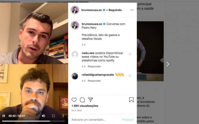 Durante a live com o economista Pedro Fernando Nery, o deputado Bruno Souza (Novo) alertou sobre a importância da discussão da reforma da previdência do estado, principalmente num momento de pandemia que vivemos, quando ocorre o crescimento acelerado das despesas públicas.