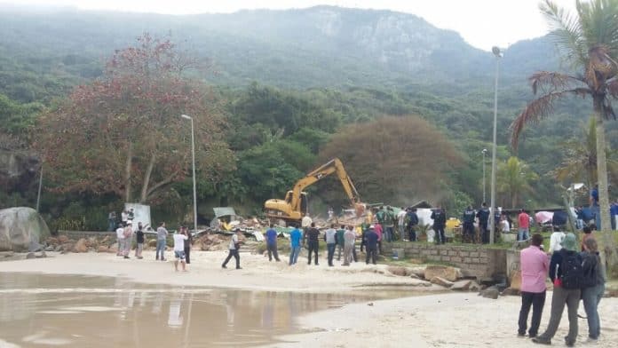 Neste primeiro dia de demolições, foi derrubado, pela manhã, um restaurante que vinha funcionando de propriedade do Costão Ville Resort Empreendimento, e em torno de sete barracos de madeira que se encontravam em situação precári. As demolições, no entanto, continuarão por mais 15 a 20 dias.