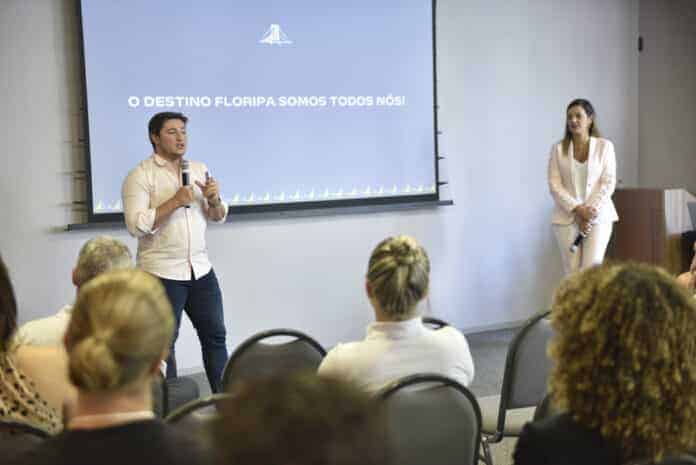 Legenda fotos: Presidente do Destino Floripa & Região, Lucas Schweitzer, na apresentação da agenda de ações deste ano aos associados